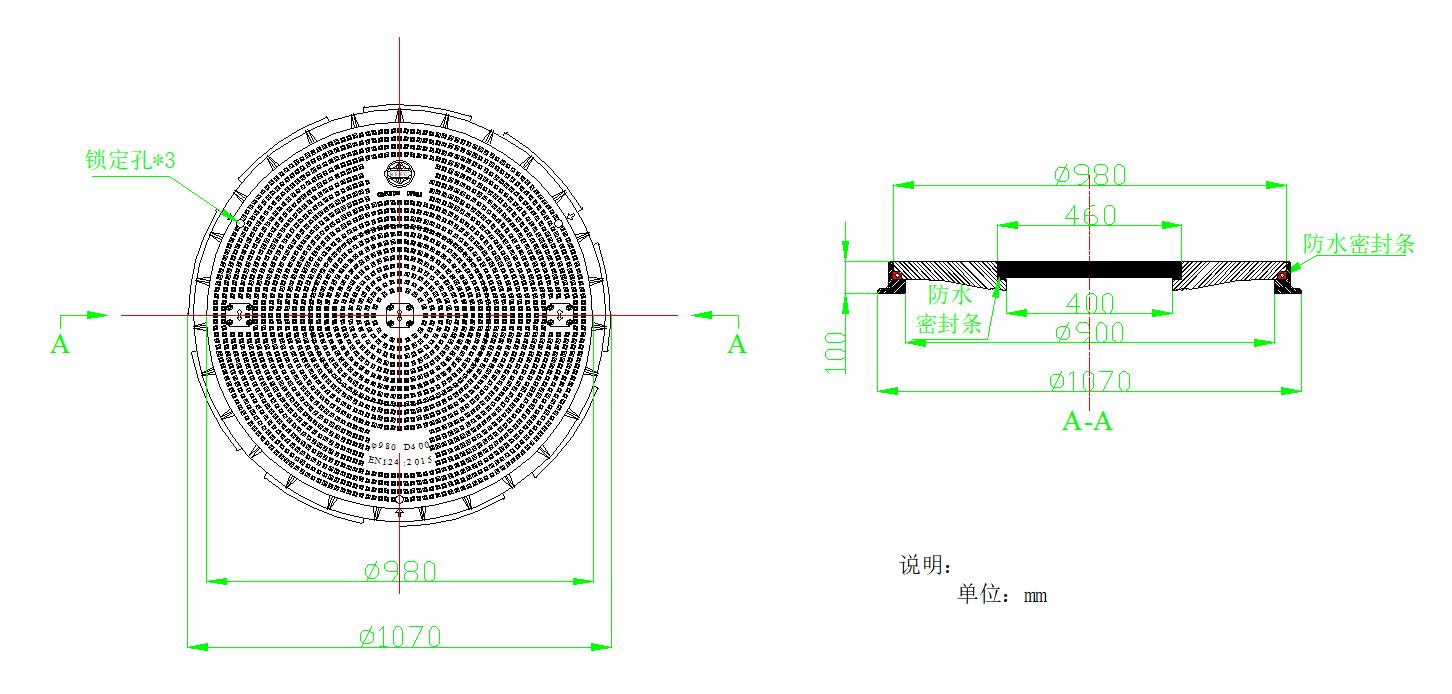 产品结构:井盖、井座、锁定装置、可拆卸密封装置组成